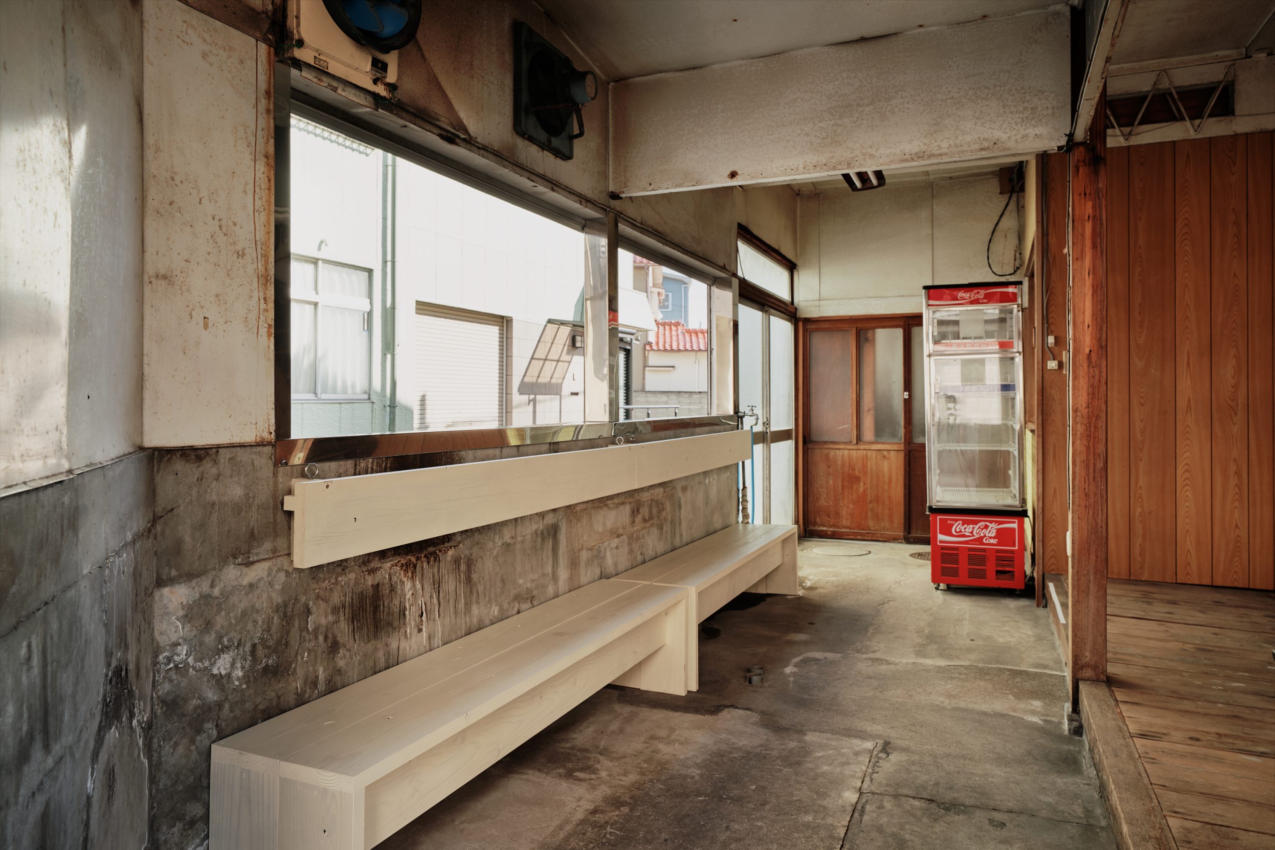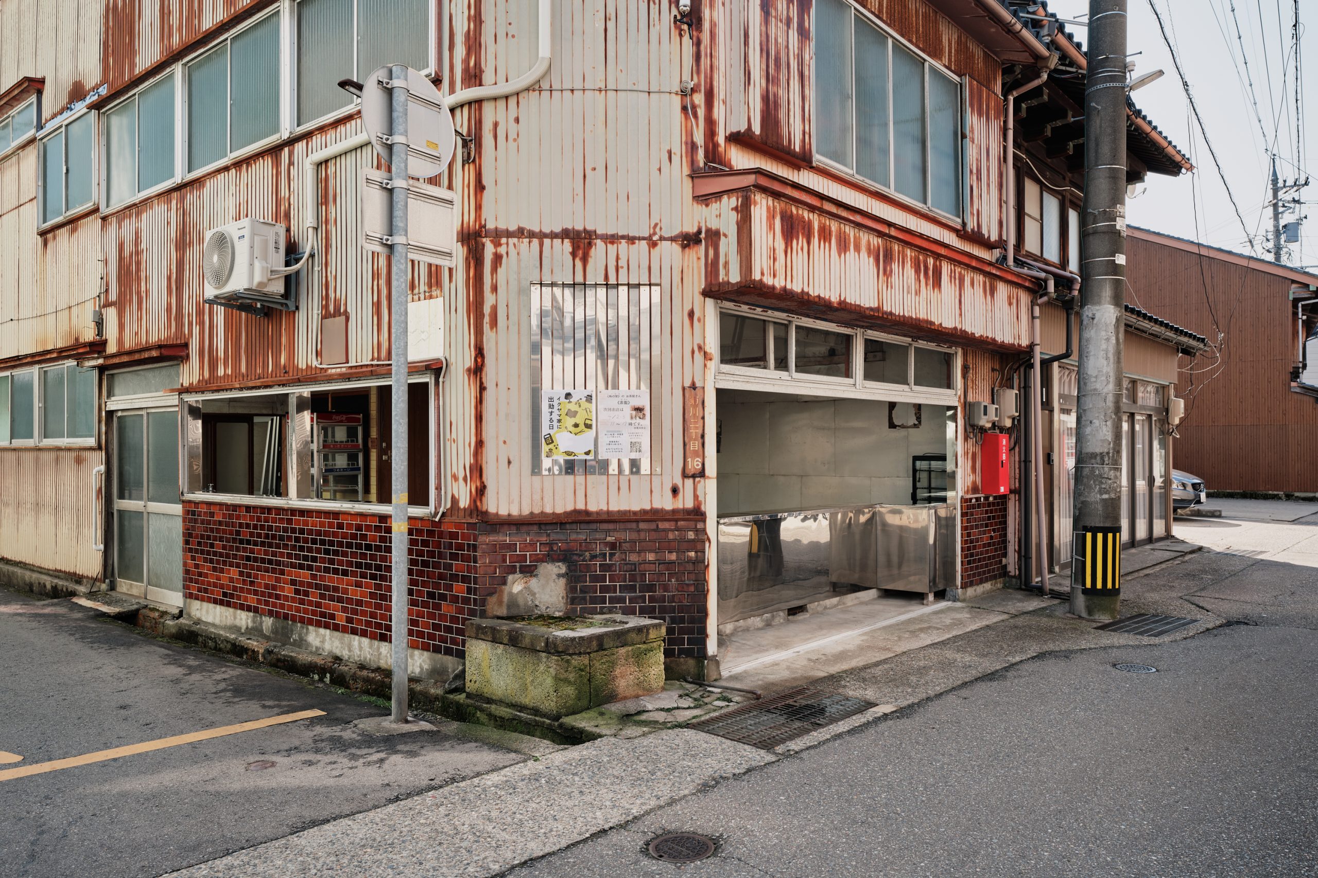 錆びたトタン張りの外観が目を惹く「角の家」は、かつては製麺所兼住宅として使われていました。麺の製造と販売を行っていた1階手前のスペースは、建具を開け放つと通りに開けた半屋外のような空間となり、マーケットや小さな催しの場として使うことができます。
